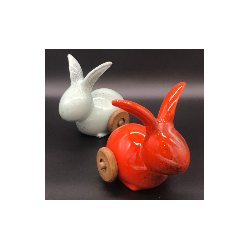 CONIGLIO IN CERAMICA SMALTATA CON PARTI IN LEGNO DI FRASSINO
